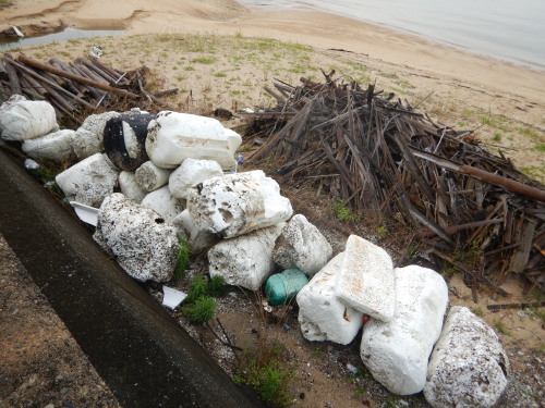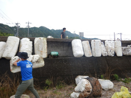 主目的として、発砲スチロール製のかき筏ブイの回収を行いました。