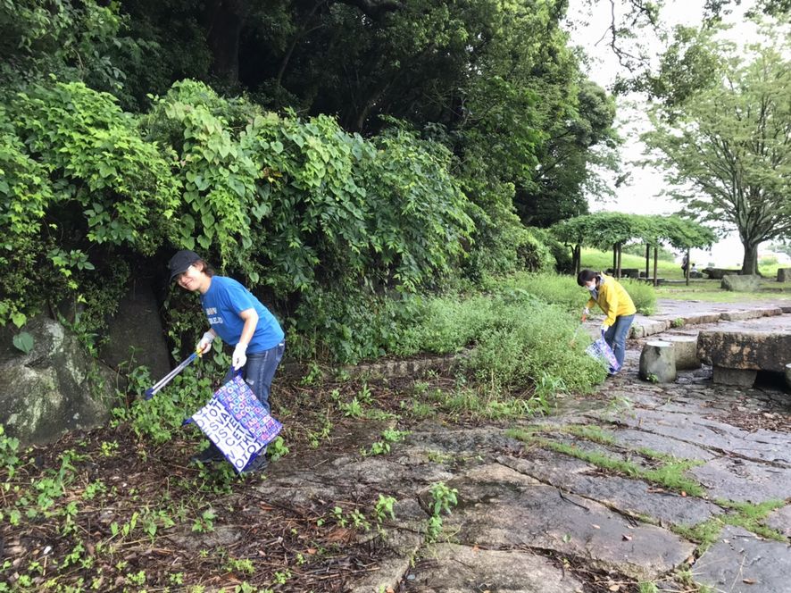 こんなに草が茂っている中も果敢に入って拾ってくれています。