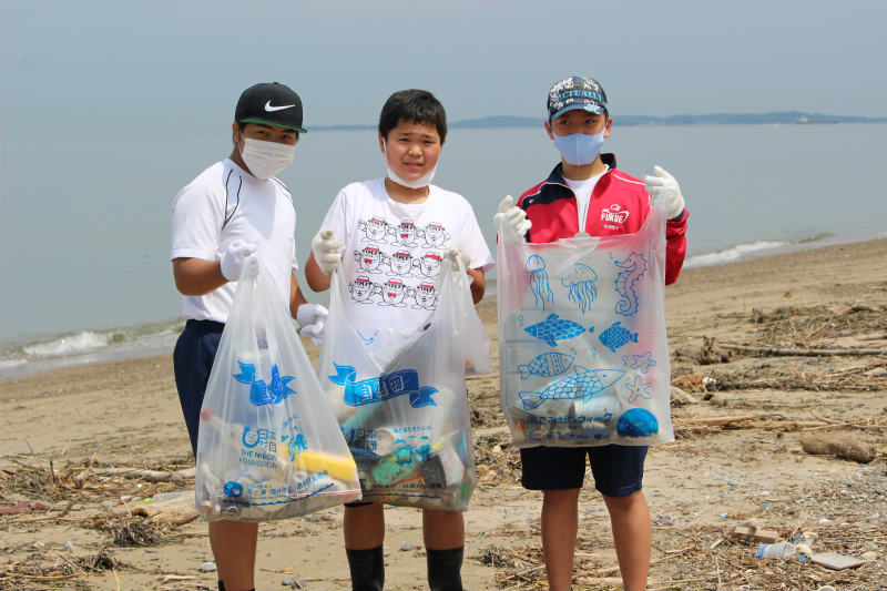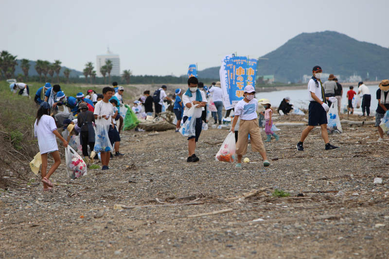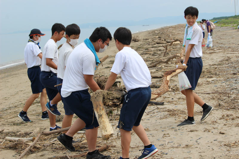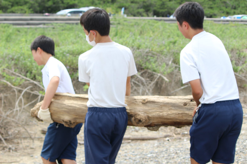 ゴミはあまりなく、参加者70人 ゴミの重量140Kg しかし、7月の入って岐阜の方で長く続いた豪雨の影響を受けて浜には大量の流木がありました。人口ゴミが見えなくなってきたところで、流木を集めました。