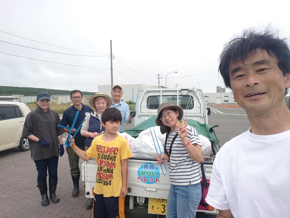 青森みらいペレットの高橋さんご夫妻と、沼山建業さんの沼山さんご夫妻と共に、大人6人子ども一人でゴミ拾いをしてきました。