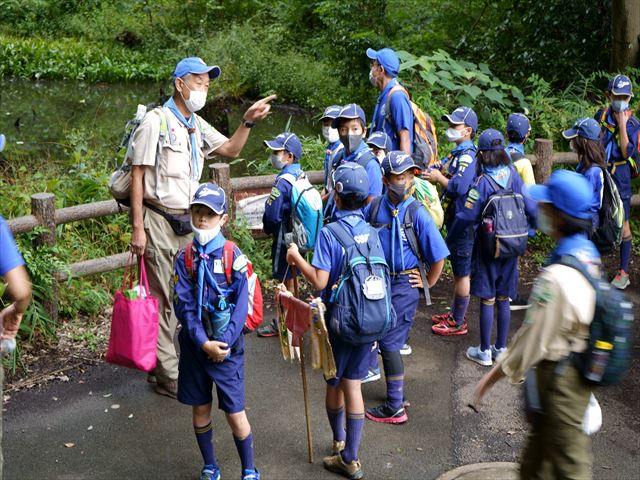 途中、帷子川の上流の一つ水の森公園で湧き水の説明。この水が川を通って海に流れ出るんだね。その水にごみが一緒に流れないようにきれいにしなきゃいけないね。