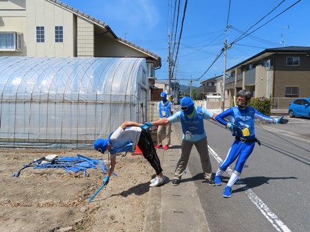 ゴミブルーたちも夏仕様、自分の命は自分で守ります。