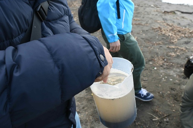 水質調査は、開催時間の都合でゴミ拾い前に行いました。