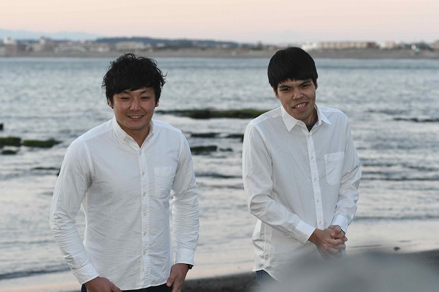 ゴミ拾い終了後に、お笑いステージ(ゴミを拾ってキレイにした砂浜)でネタをしてくれました。