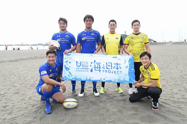 浜でのタックル!! 浜でのパス!! 浜から海へのキック!! ラインアウトまで。