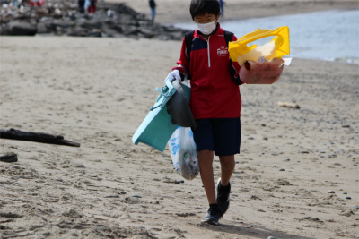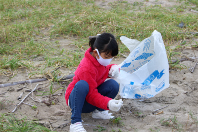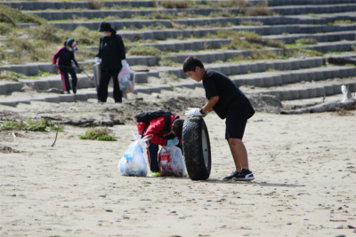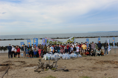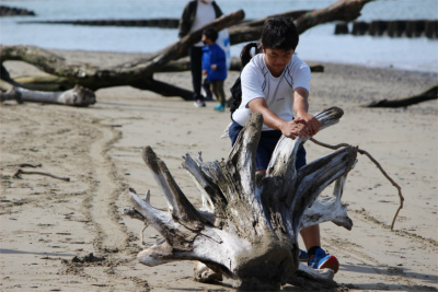 参加者78人 ゴミの総重量180Kg ゴミの量も気になりましたが、流木が多くあり、集めてもらいました。砂に埋まった大きな流木のところに集めました。