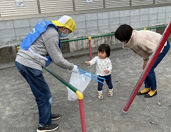公園にはゴミがたくさんあって、ブランコで遊んでいた女の子が手伝ってくれました。