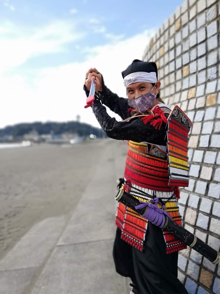 今年、初の鎧の出陣は、湘南クリーンエイド主催の「All Ocean-lover's Beachclean」。茅ヶ崎サザンビーチから鎌倉材木座まで、10団体が一斉にビーチクリーンを実施しました。我々は、片瀬東浜に出陣です。