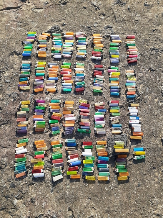 段ボールを敷き、ライターを米袋でくるんでしっかり押さえる