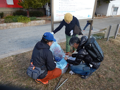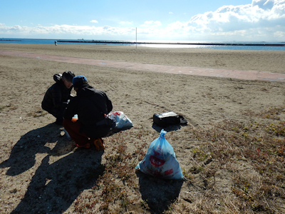 雪の舞う中、2時間ほどゴミ拾いを行った後は