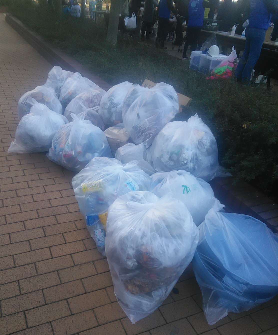 拾ったゴミの袋数と可燃 / 不燃の割合