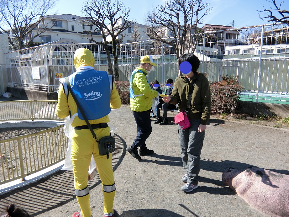 2021年2月5日(金)に第9回プチコロリ in 浜マーケットを、とてもよく晴れた暖かい日差しの中で開催しました。浜マーケットさんをお散歩していた子供達にゴミイエローが名刺を渡してご挨拶!(^^)!