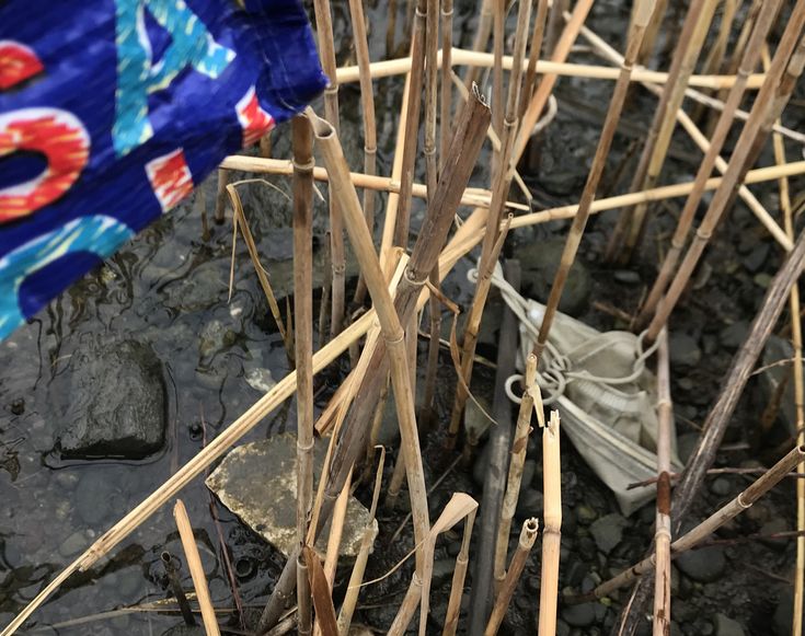 葦が刈られた後に多数のゴミ、
