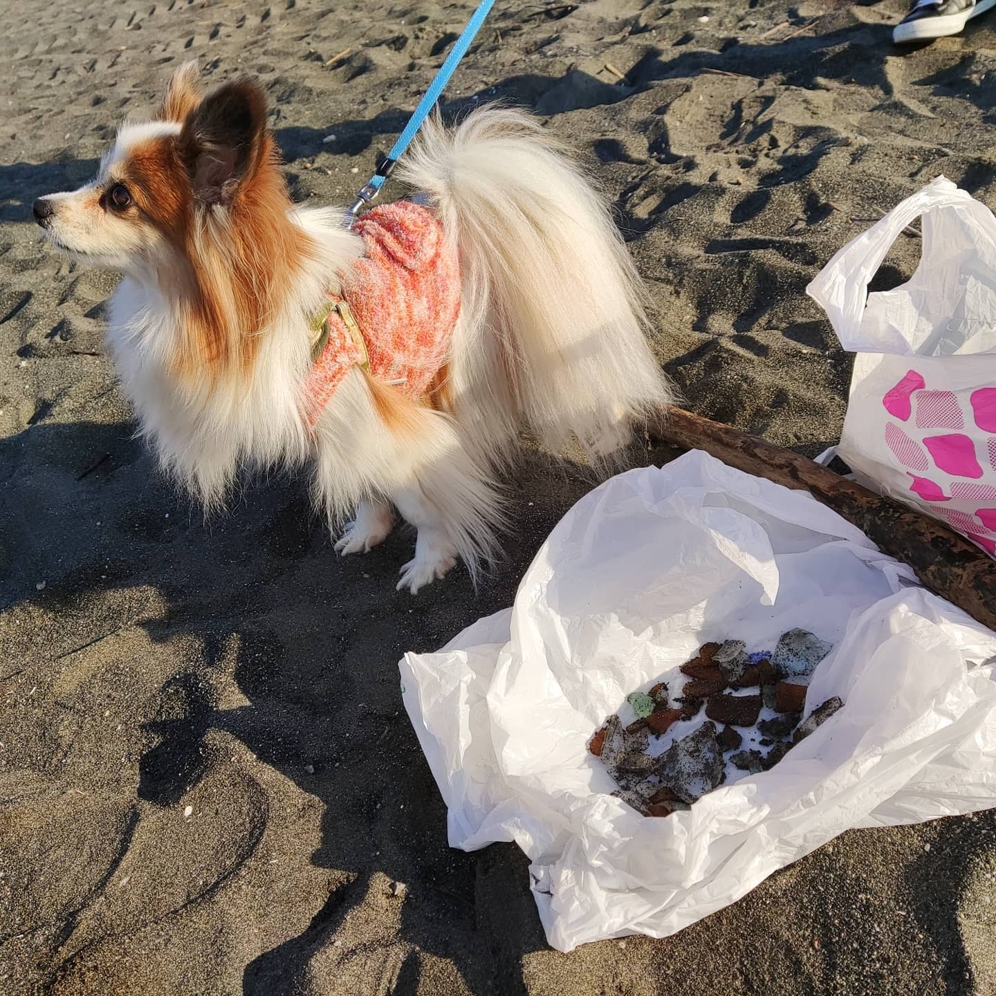 わんこ達が尖ったビーチグラスで怪我をしませんように、この活動の原点です。