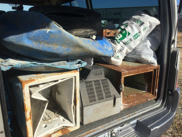 ハイエースやキャラバンの荷台に4杯分の流木を運び出し、加えて、新たに出てきた大型の漂着ゴミを運び出しました!!