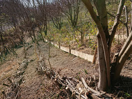 手作りの土留め杭で粗朶を固定しながら、今日も人の手で繊細なレースの様な思いやりフィールドが編まれました。
