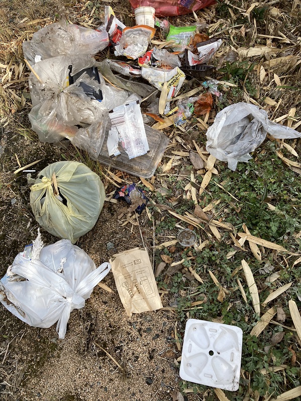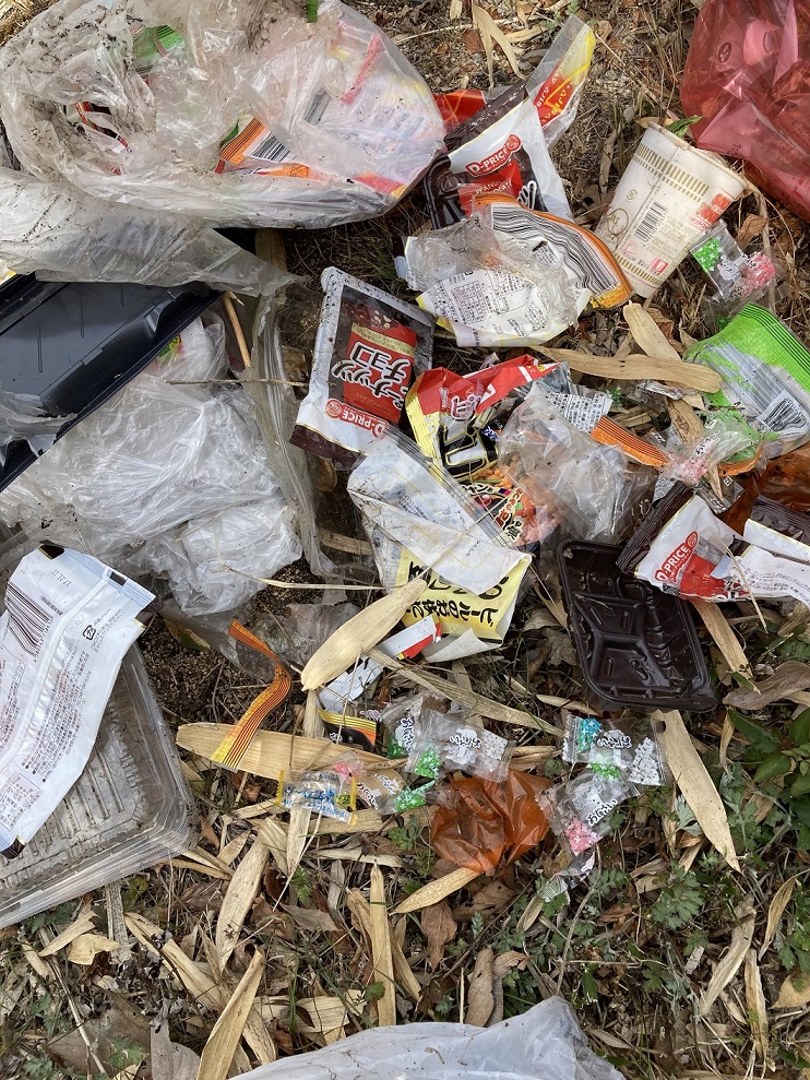 ビニール袋を突き破って笹が生えていたため、回収するためには袋を破るしかありませんでした。