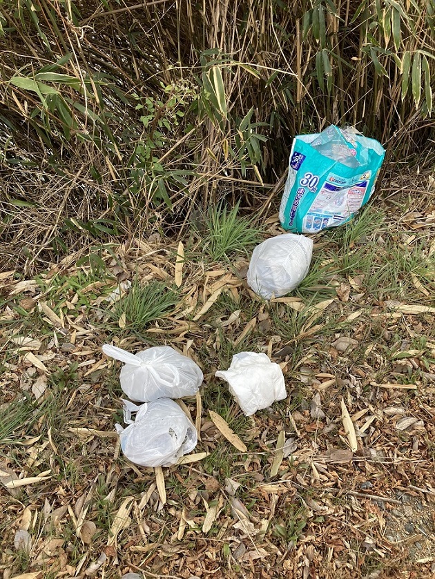大人用のおむつが大量に捨ててありました。