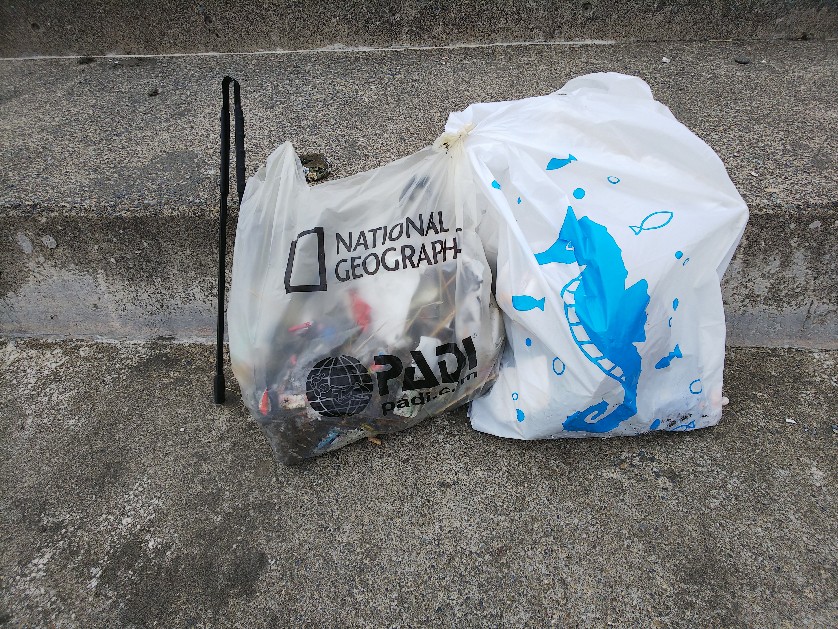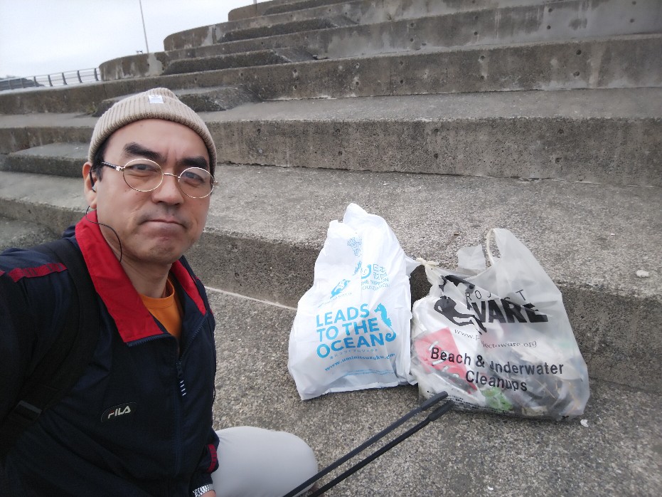 東浜は釘がいっぱいってことだったんですが、実際この日は見当たらなかったので、海岸沿いの道路と植込みのごみ拾いをしました。
