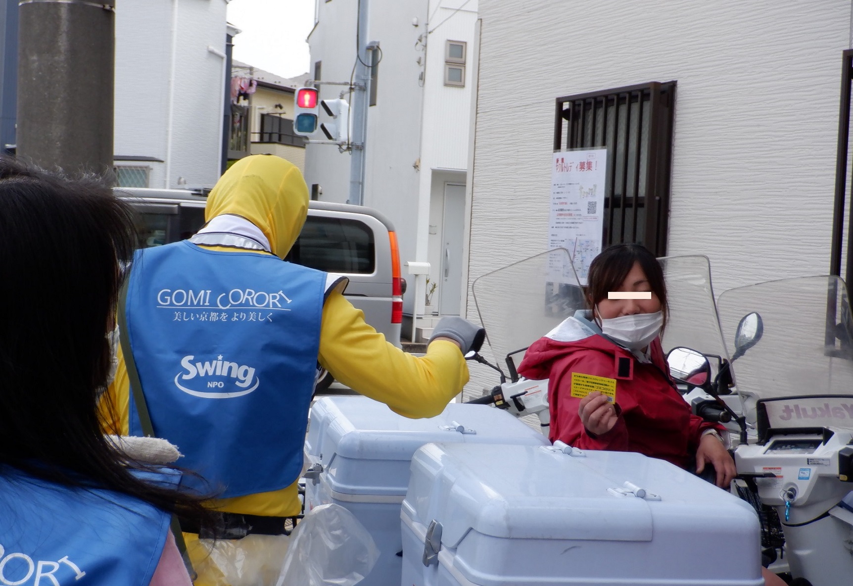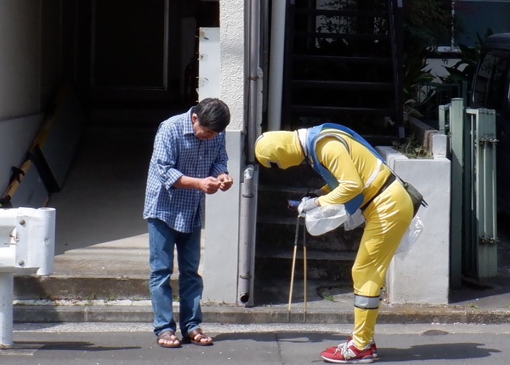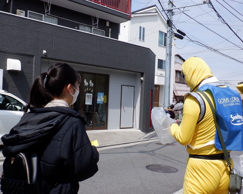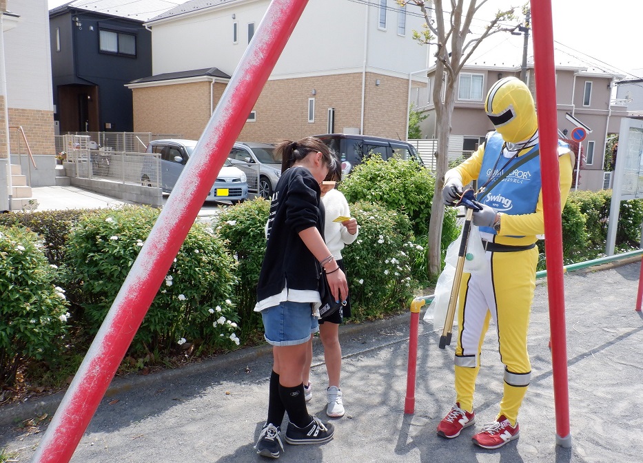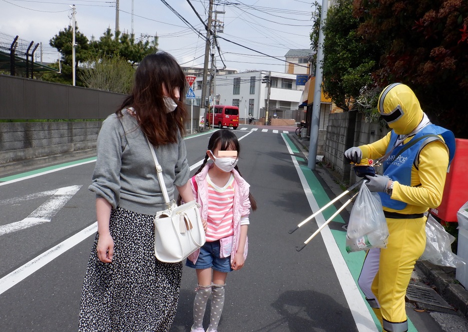 声をかけて下さった方々に、ゴミイエローが名刺を渡してご挨拶‼磯子小では大勢の子供達に会えました。
