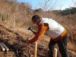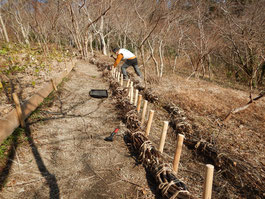 そんな2人きりの本日はみんなで作った粗朶で山道づくりと植樹地の計測に従事しました。