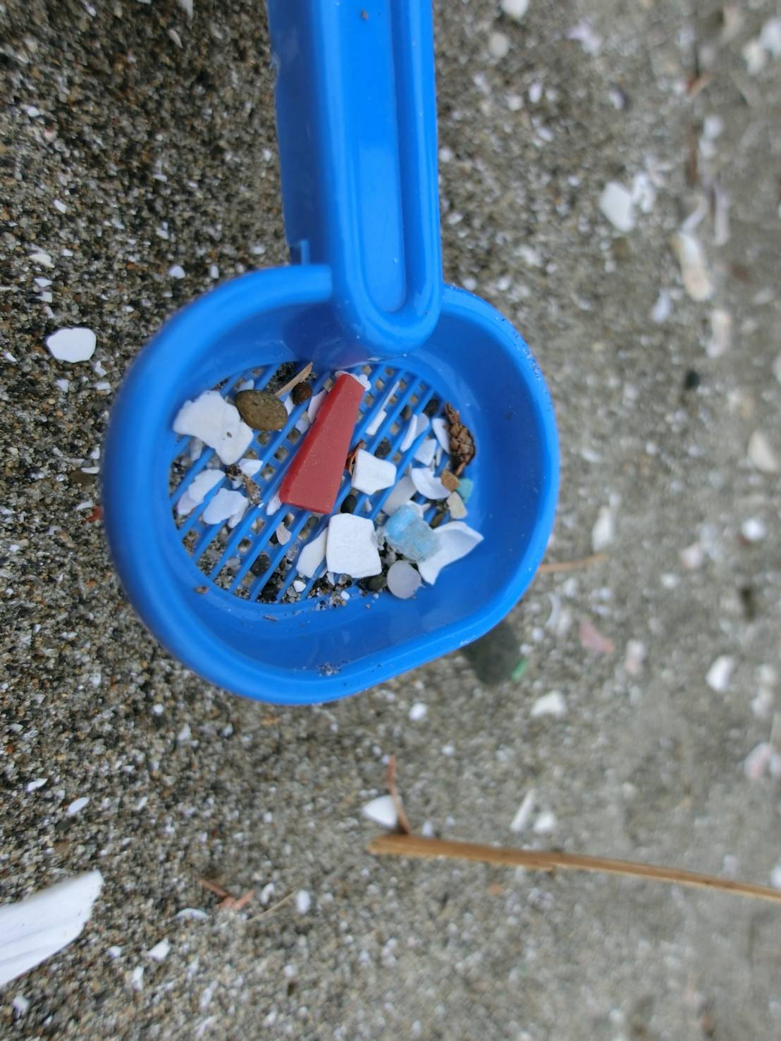 今回は、活動を行う前から砂浜に大きなゴミがあまり落ちていなかったので、マイクロプラスチックごみを中心に拾い集めるようになりました。