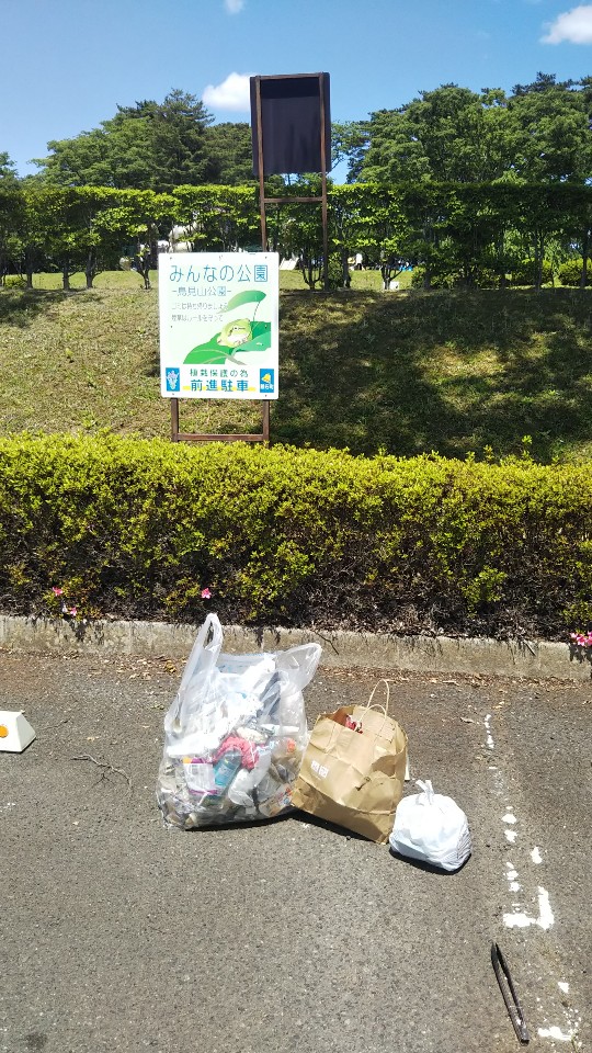 本日は晴天に恵まれ気持ちよくゴミ拾いをしました。 鏡石町の鳥見山公園周辺をゴミ拾いしました。 空き缶やペットボトル、マスクや吸殻などたくさんのゴミでした。