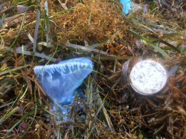 前回も確認したが、今回もカツオノエボシがたくさん漂着…