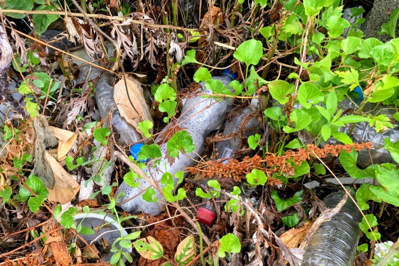 夏が近づくとゴミが草に隠れて拾い難くなっていきます。それでも、草をかき分けると、次々とペットボトルなどのプラスチック容器や発泡スチロール、漁業系のゴミが出てきます。