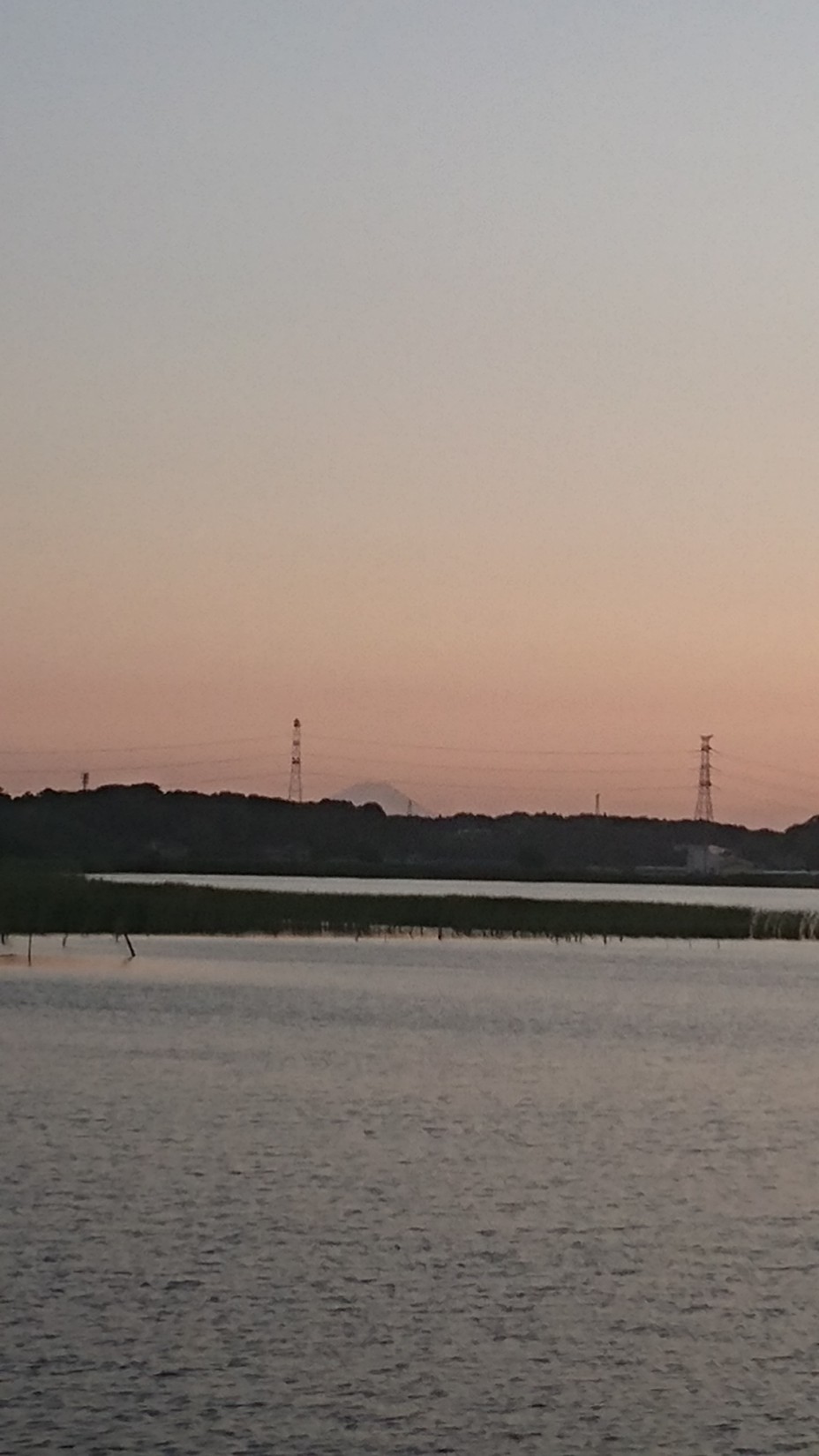 頑張った日の手賀沼夕陽。曙橋は夕陽ポイント、カメラを持った人が続々と集まって来ていましたよ。富士山も見えるんです!