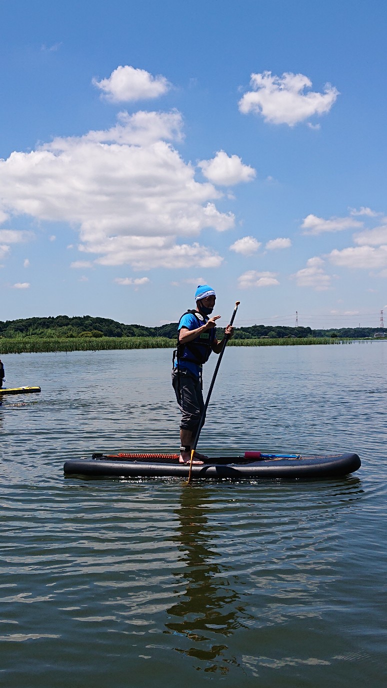手賀沼自然ふれあい緑道を整備してくださっている造園男子もSUPを漕いで沼クリーン。普段から木に登ったりしているので体幹バッチリ。あっという間にスイスイ漕いでいました。
