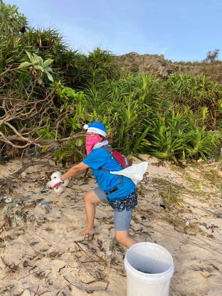 広範囲のモンパやアダンに引っかかっていたゴミを拾うことができ、一番奥のゴミも格闘してくださる方たちのおかげで拾うことができました。