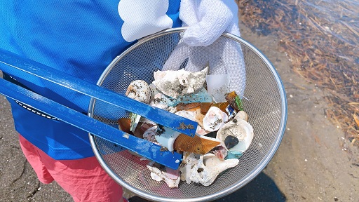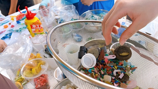そんな深刻な海のプラごみですが、私たちはごみ拾いと同時にプラごみアートの材料探しのため、綺麗な色、不思議な形のマイクロプラスチックの宝を探すような感覚で収集していきます。