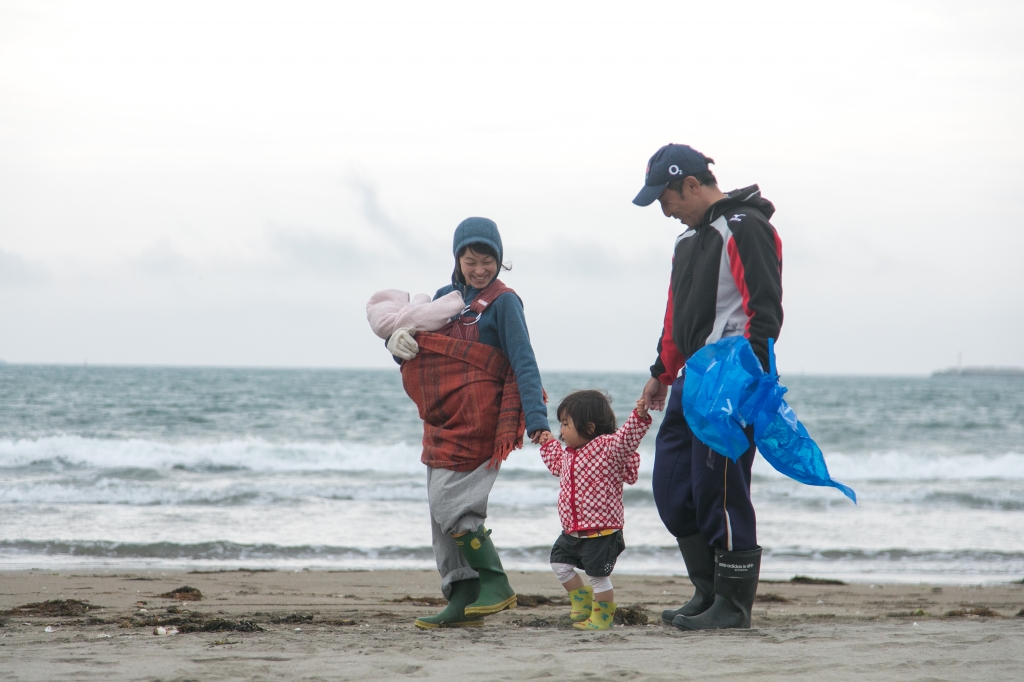 浜辺を散歩中の家族のように見えますが、れっきとした参加者さんです!