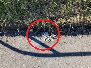 本日の参加者は4人。緊急事態が解除されたにも拘らず寂しい清掃活動となりました。結果は4袋ですが、相変わらず「吸い殻」が多く、三角公園の脇は大量の「吸い殻」が・・・。
