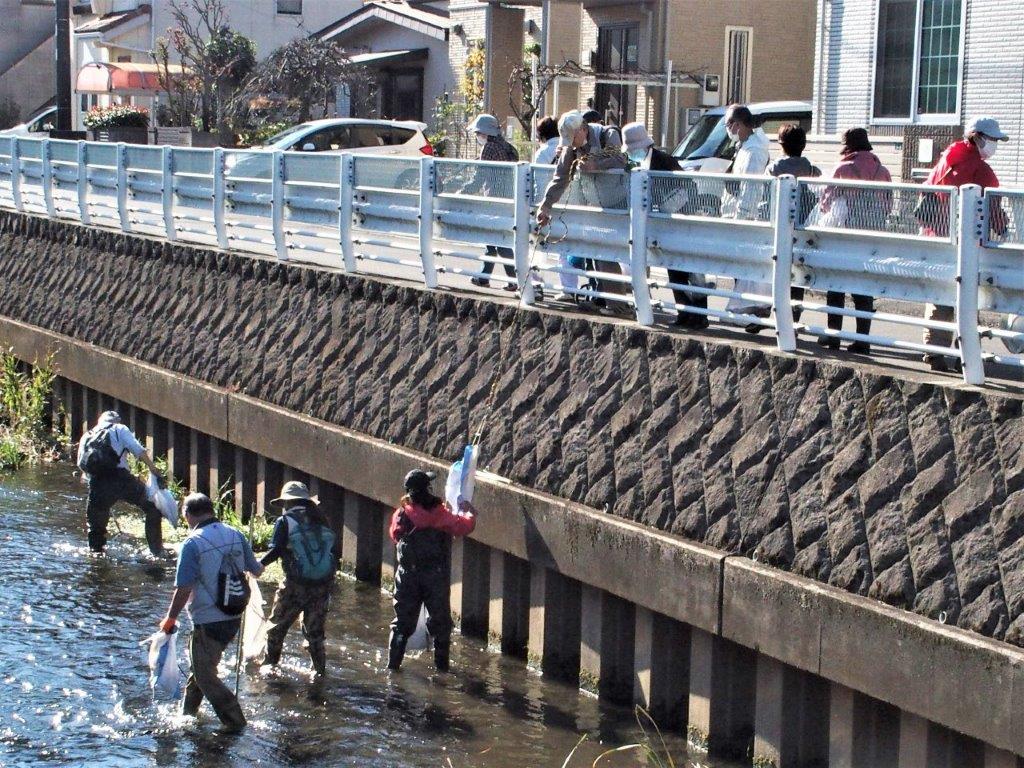 11月13日目久尻川清掃、上流班は上谷橋から薮根橋までの区間を座間のホタルを