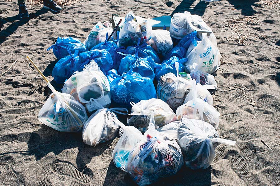 拾ったゴミの袋数と可燃 / 不燃の割合