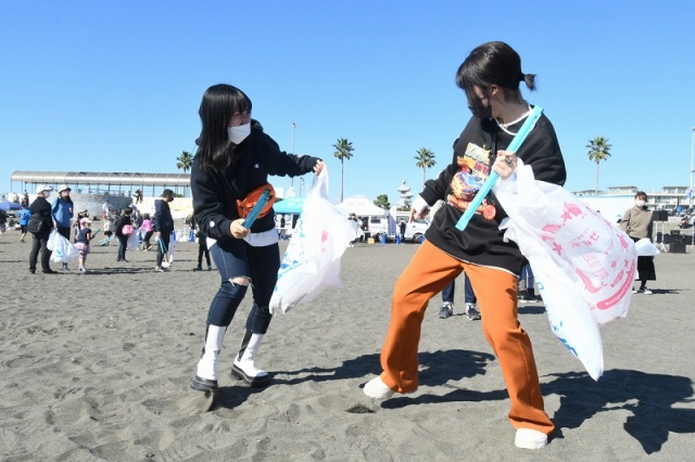 2人は、海でゴミ拾いを体験し、どうしたら、浜に来てくれるだろうか!?どうしたらゴミがなくなるだろうか!?と