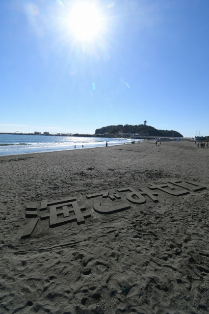朝はやくから、大きな荷物を持ってきてくれて、「海ごみゼロ」というサンドアートを作ってくれました。