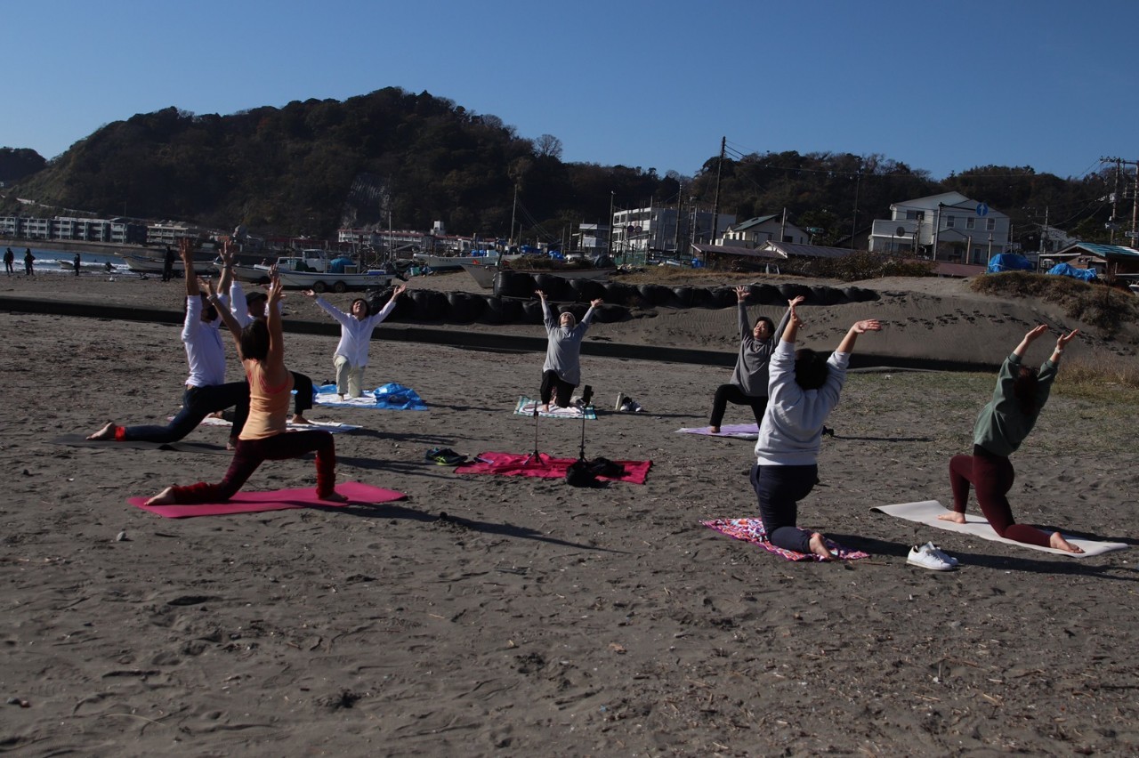 キレイになった浜辺でビーチヨガ
