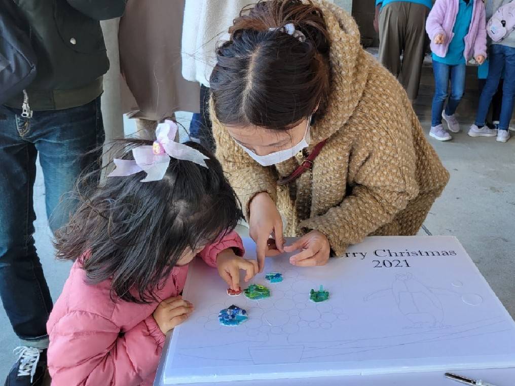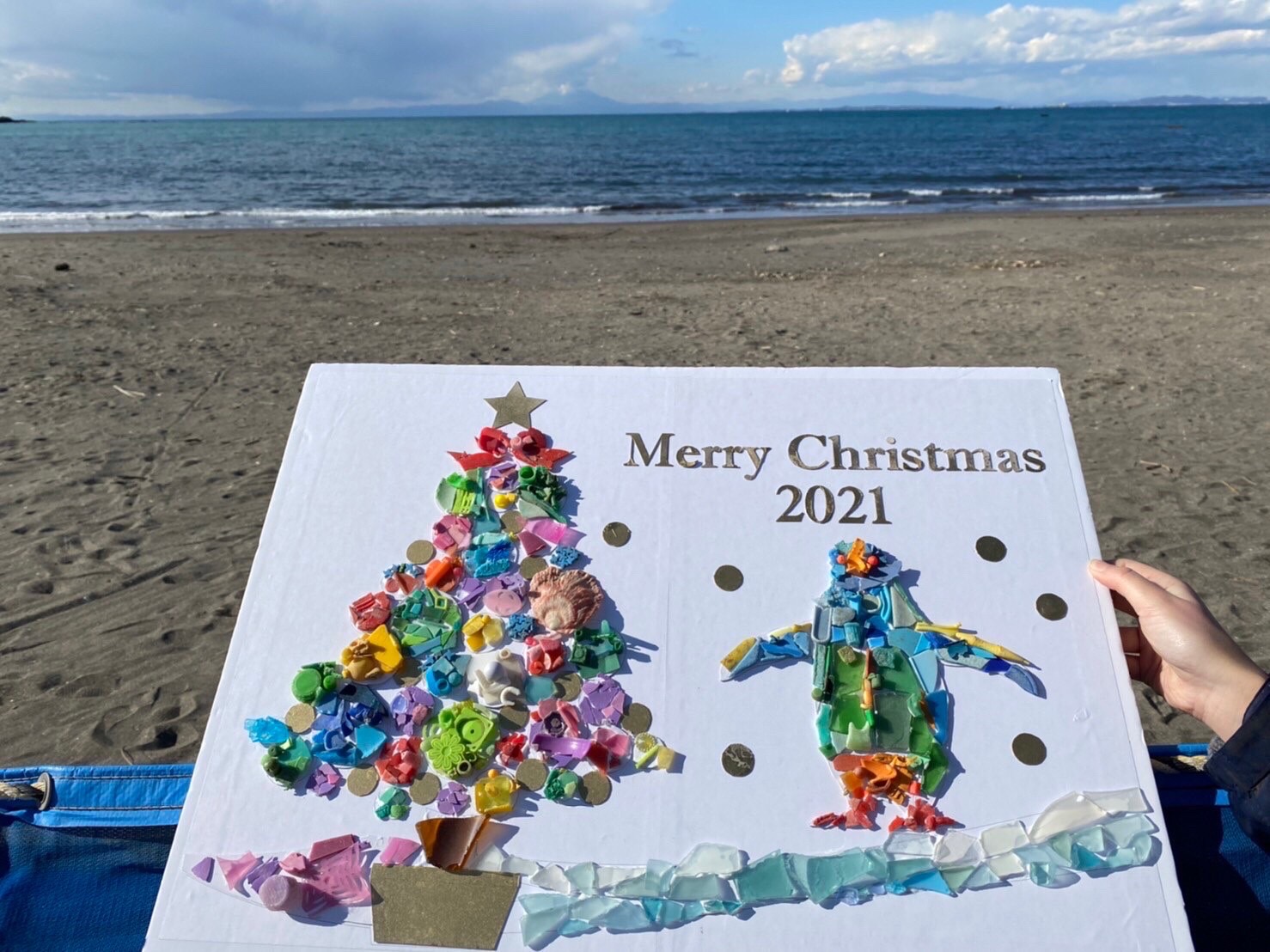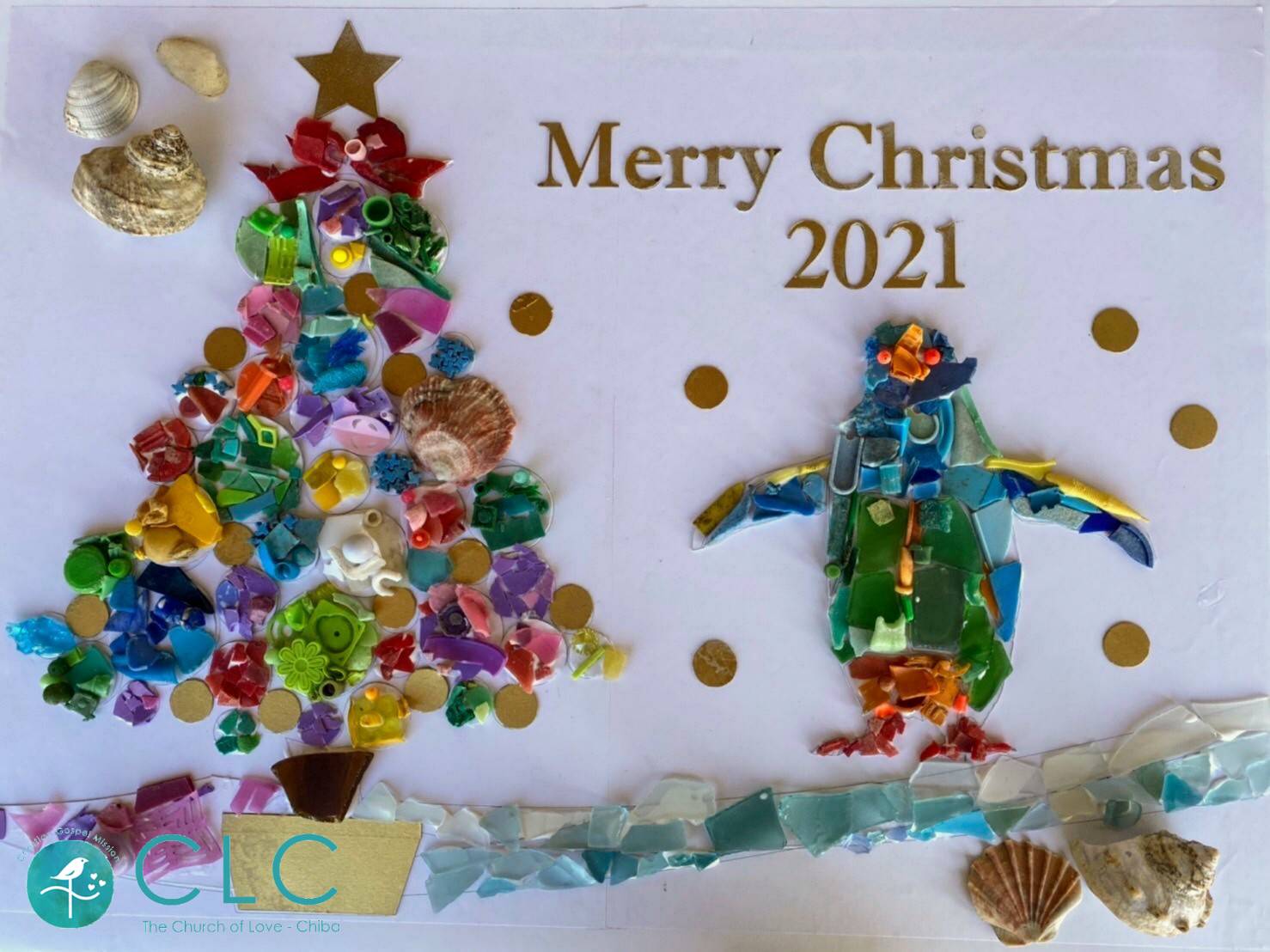 カラフルなプラごみを使った、素敵なクリスマスツリーが完成しました。