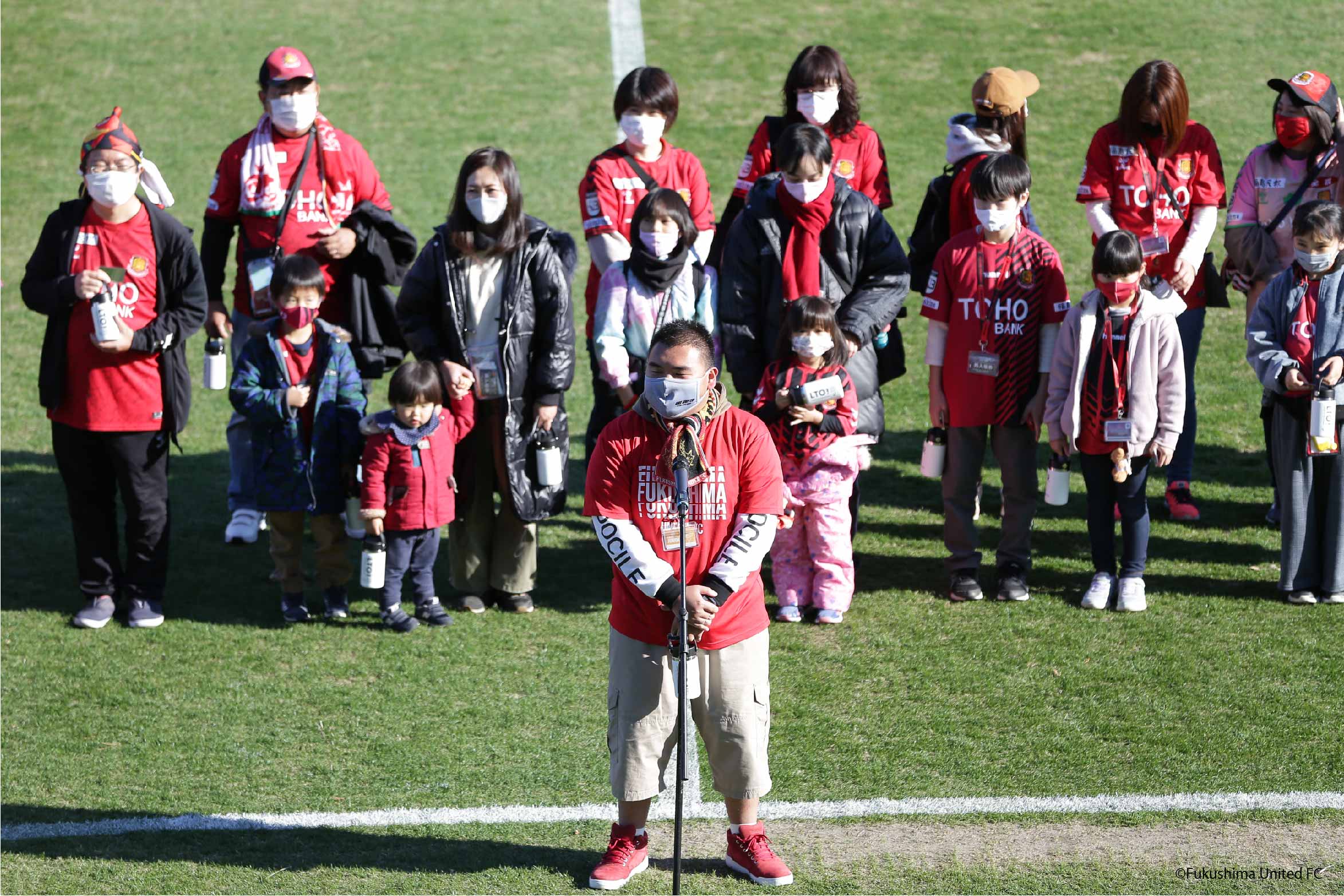 さあ泣いても笑っても色々あった今シーズンも最終節となりました。会場はJヴィレッジスタジアムです。ホームの福島市や会津若松市から遠いのに沢山のサポーターさんにお越しいただきました。快晴の12月ホーム戦は最高ですね。そして試合前にはLTOのゴミ拾いマスターの表彰式が行われました。「代表して誰か挨拶する?」という無茶振りにサポーターの三瓶くんがしっかり挨拶してくれました。小学生くらいから見ていて現在高校生の三瓶くんの成長を見ることができました。かっこよかったよ!