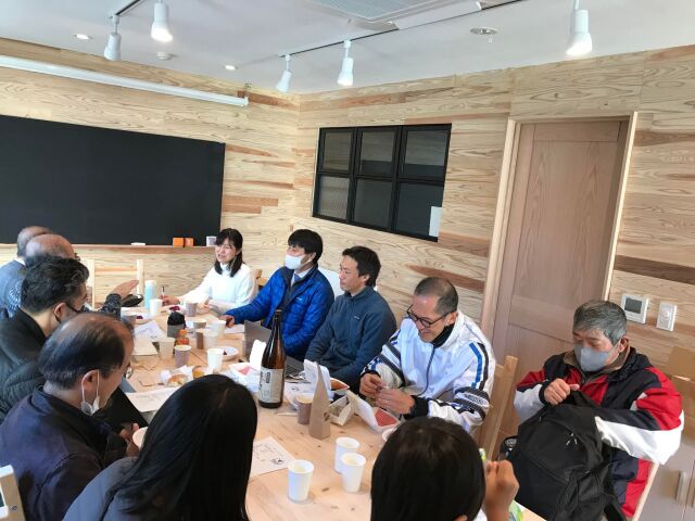☆初の総会、兼、新年会は「まちbizつづき」というシェアオフィスのセミナールームをお借りして、ランチをいただきながら実施しました。「まちbizつづき」は壁や床が木で雰囲氣も良く、こんな空間で早渕川ファンクラブの集まりができて幸せです。有り難うございます!