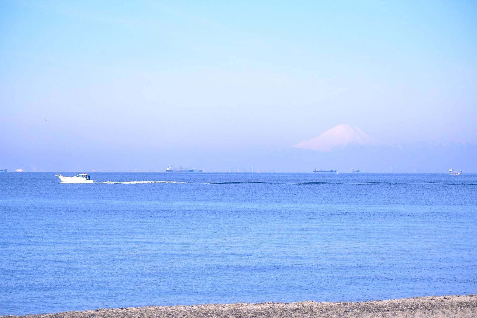 東京湾越しに雪化粧をした富士山を背景に活動しました。