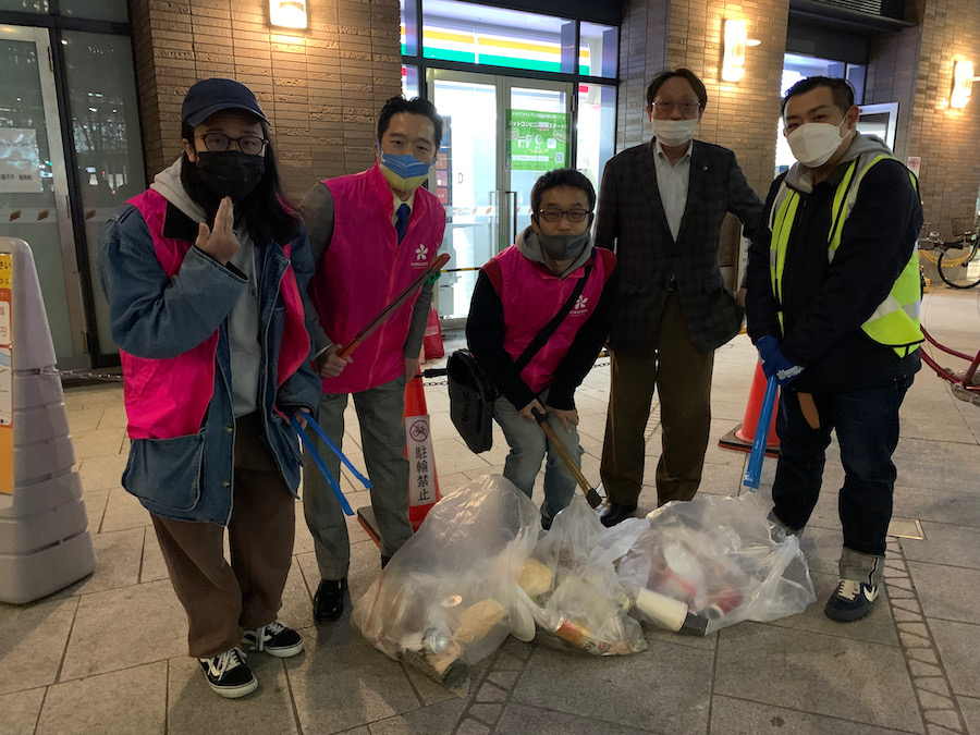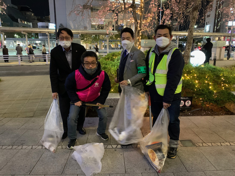 また花見客は夜も来るので、夜間清掃も今年は実施しました。その時の写真は以下になります。