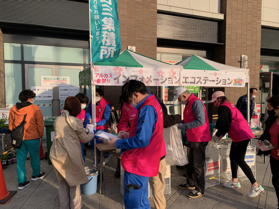 例年ならその場所でアルカス春祭りと銘打ってキッチンカーを呼んだりしてイベントもやっているのですが、コロナの影響でここ2年開催できていません。しかしエコステーションだけは設置しようということで今年は実施することができました。
