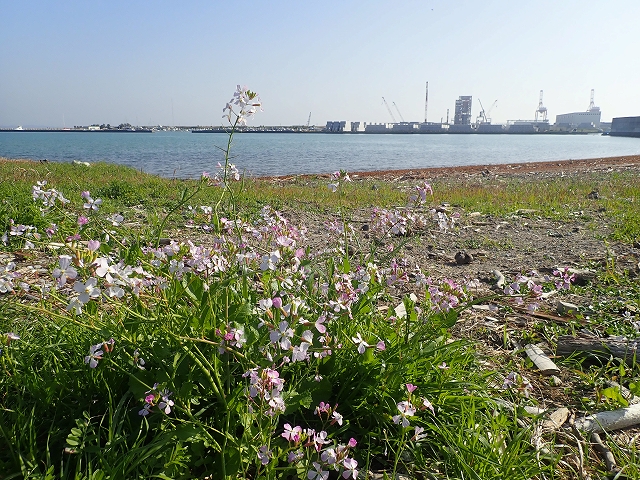 海岸にはハマダイコンの花がキレイに咲いていました(^^)