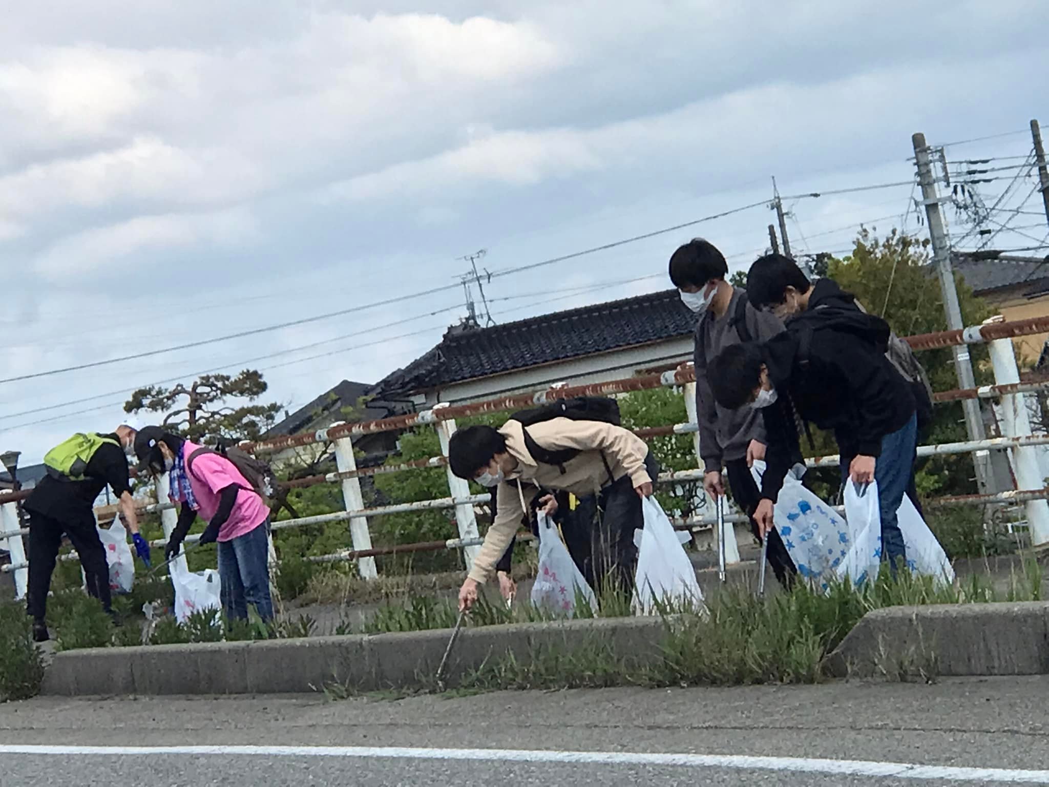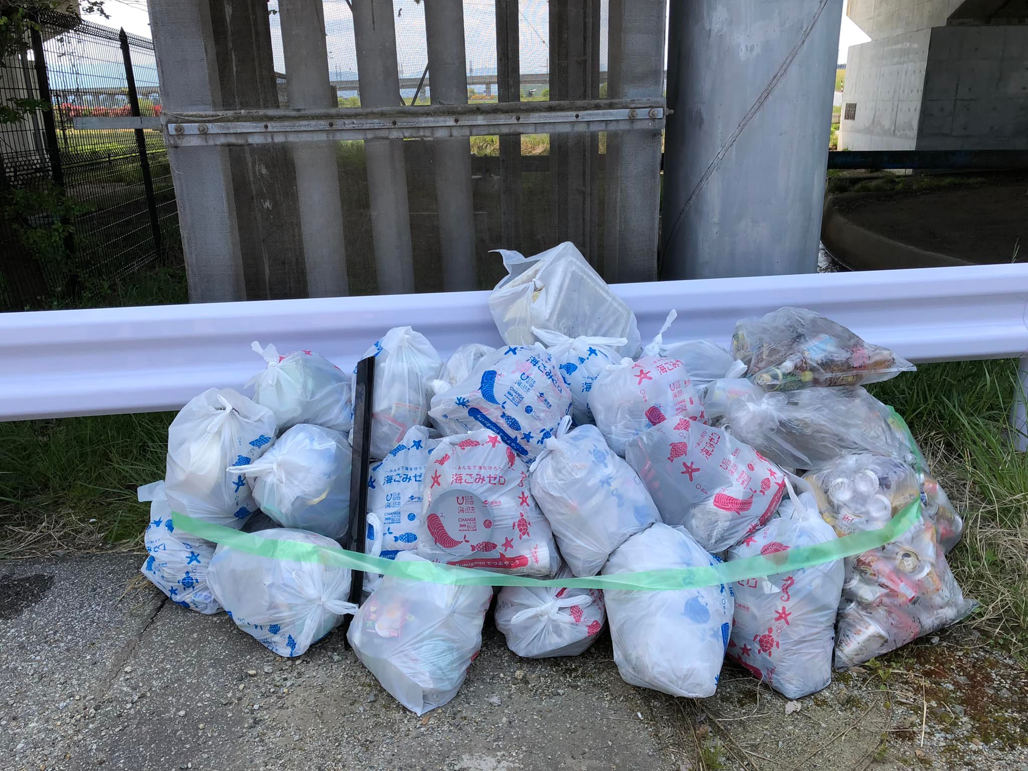 富山市金泉寺8号線高架橋下! ポイ捨て出来ない環境づくり、まちづくりが大切!(ごみを拾いたくなるような社会づくり) 若者たちがまちを綺麗にしてくれました。