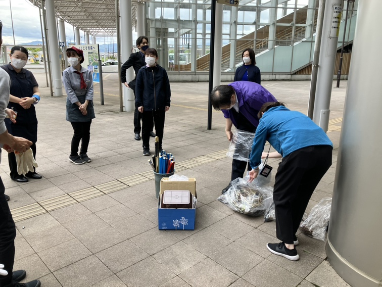 新青森駅ビル「あおもり旬味館」のスタッフで、新青森駅周辺の清掃を行いました。
