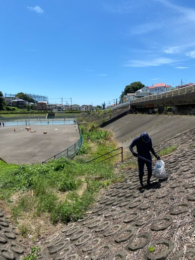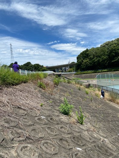 あまりにも暑い気候の為、熱中症対策も踏まえて少しは日陰のある遊水地での活動にしました。